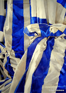 Así que de nuevo teneis aquí el blanco y azul de las carpas, el "txuri-urdin" de nuestra Donosti, el azul de mi paleta y el blanco del papel.
